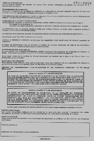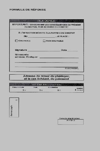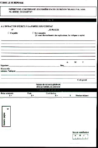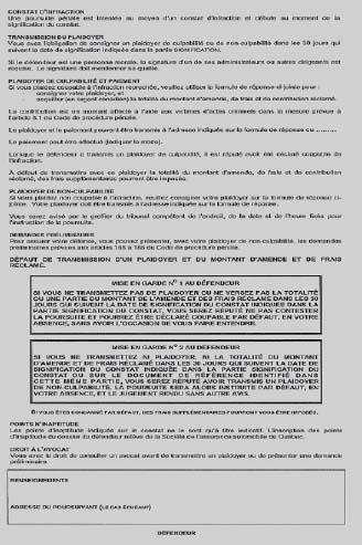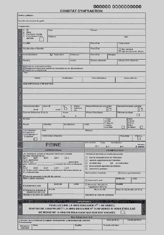 16. Le constat d'infraction entièrement réalisé sur support électronique se présente sur des pages-écran composés de données informatiques correspondant au recto et au verso d'un feuillet de constat d'infraction. Il en est de même du document-réponse au constat d'infraction, lequel se présente sur des pages-écran composées de données informatiques correspondant au recto et au verso d'un document-réponse sur feuillet joint à un constat d'infraction.